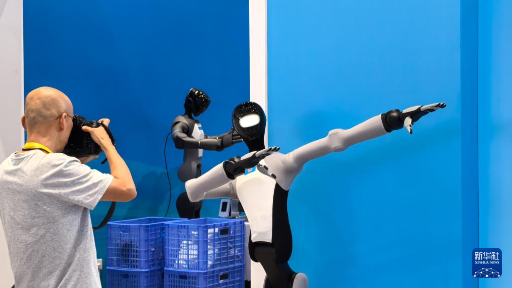 8月30日,一台展示双臂自由度的机器人在2025年上海合作组织峰会新闻中心吸引摄影师拍照。